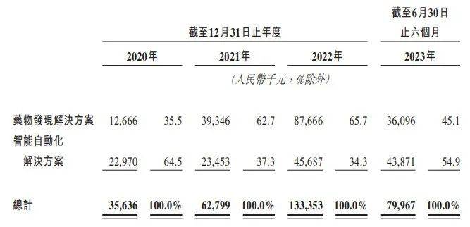 從收入來看,晶泰科技業務主要分為藥物發現解決方案和智能自動化解決方案兩部分。