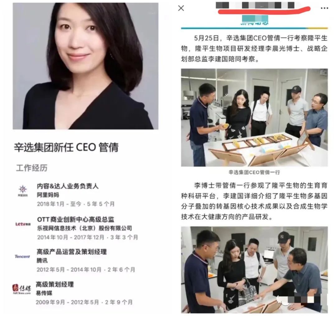 5月25日,有消息顯示,管倩一行考察隆平生物;