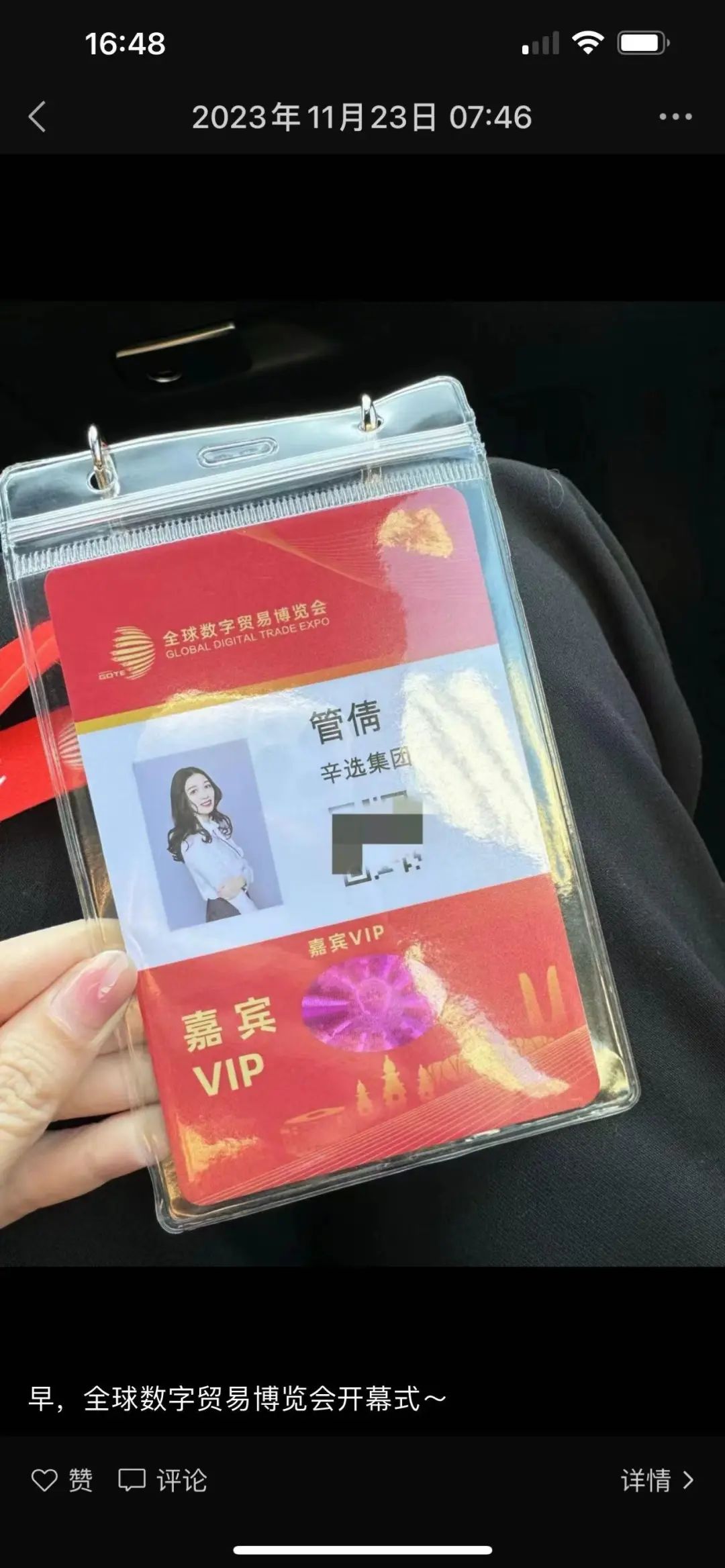 管倩的朋友圈在11月23日還發了參會的照片。