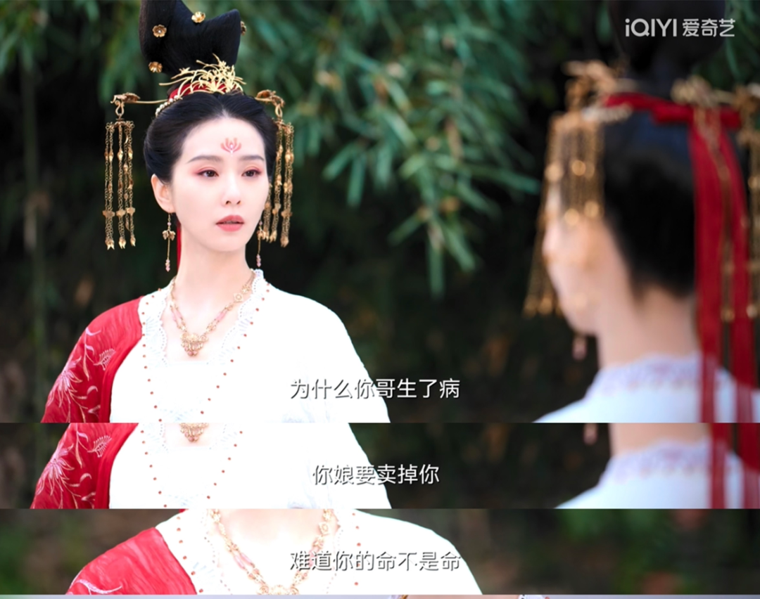 在故事內核上,除了雙強設定、家國大義、人物成長外,電視劇還試圖在創作中去與時代女性產生更強的鏈接。這也是古裝劇在女性塑造上常見的手法:為了更契合時代女性的審美,女性往往有着超脱當下的情感價值觀。如果説電視劇尚且為如意“生孩子”的執念尋找了一個白月光皇后的説辭,那劇中她面對閨蜜的戀愛腦、被父母賣掉給哥哥治病的境遇等發出的詰問,便是這種創作思路的代表。