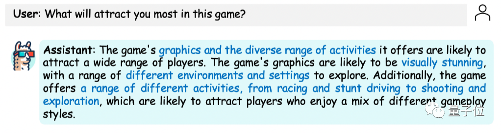 問它“這個遊戲哪裏最吸引你?”,它“看”完後給出的想法是:一是遊戲場景和設置非常多(從賽車、特技駕駛到射擊等),二是視覺效果比較驚豔。