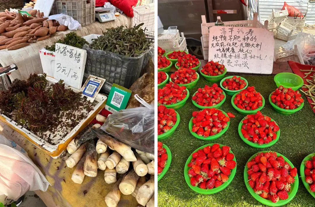 趕集,讓出神兒彷彿回到了家鄉東北的早市。“在北京,如果你去山姆、盒馬買東西,店員的態度是很有距離感的。而在市集,攤主操着各地方言,顧客比肩接踵地走來走去。這種氛圍很鬆弛,像是參與了一項社會活動,而不是一個單獨的購買事件。”