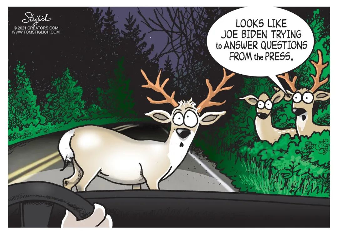 如圖所示,“(like a) deer in the headlights”是很形象的英文俚語,表達“驚呆、嚇呆、不知所措”之意。