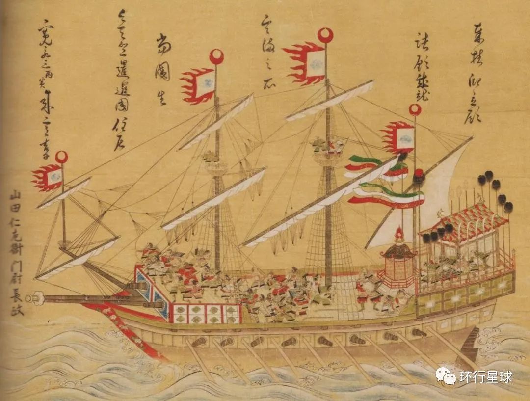 除火繩槍、南蠻胴等武器外,日本還效仿葡萄牙的蓋倫帆船製造朱印船。中國明朝時期,鄭和下西洋前往歐、亞、非國家。而當時還處戰國時期的日本,地方大名渴望名揚天下、拓展海外關係,朱印船滿足了大名的抱負,讓日本人遠涉歐、亞,甚至兩次抵達美洲墨西哥。