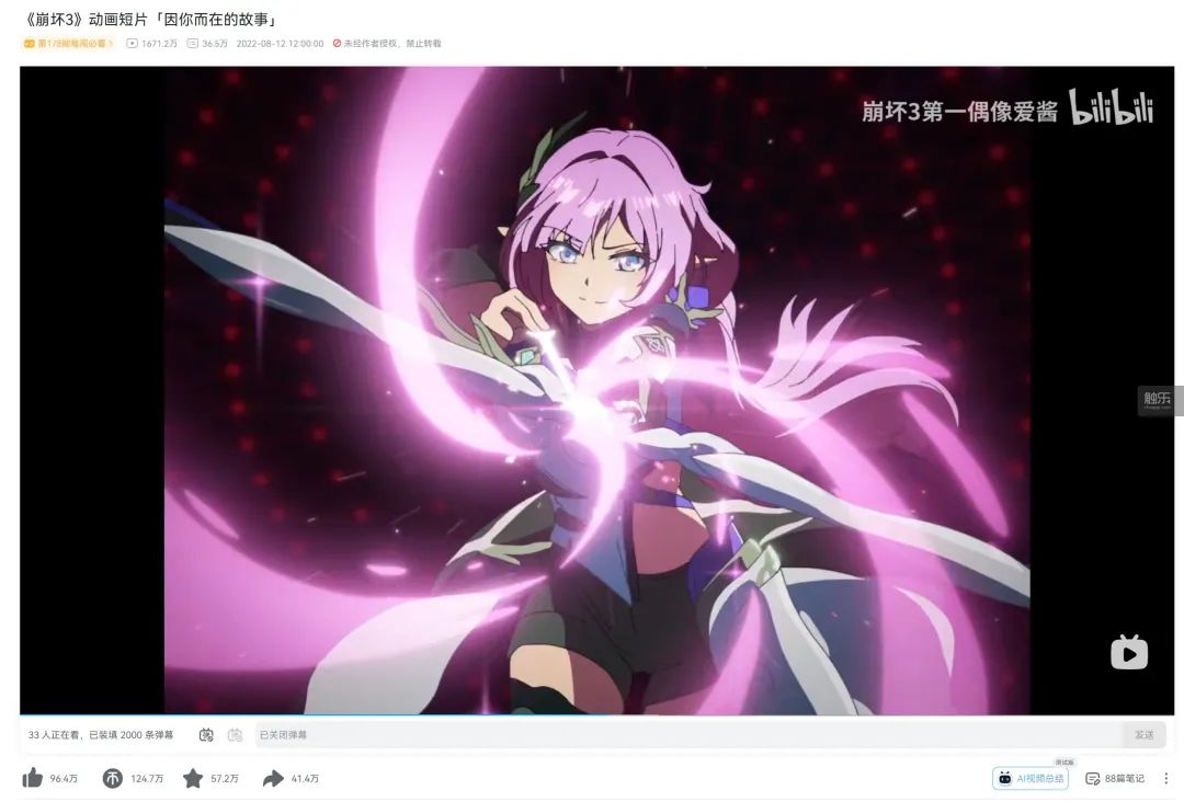 值得一提的是,參賽視頻名為《常看常新的故事》,這承接了之前《崩壞3》愛莉希雅動畫短片《因你而在的故事》和開發團隊歷史紀錄片《最後留下了故事》。在“崩壞”老玩家眼裏,這像是一種傳承,米哈遊用“講故事”的方式來為IP賦予紀念價值,老玩家們也因“故事”而更有凝聚力。非常巧合的是,TGA頒獎典禮正是太平洋時間的12月7日,也正好是“崩壞”IP之前幾部作品的主角琪亞娜的生日。舊角色的紀念、新作品的榮譽,一切好像是冥冥註定。