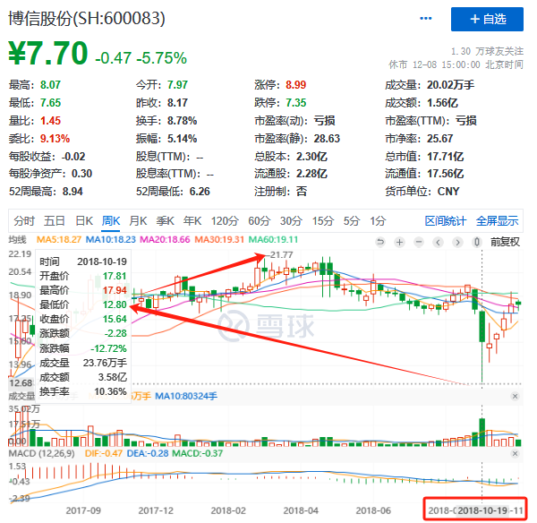 最低點的時候,股價還差點給幹到了腰斬附近——