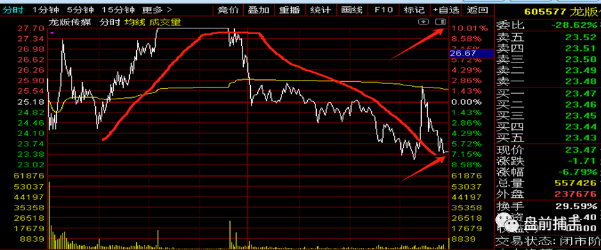 盤前策略非常明確龍版傳媒反彈至三天高點必退潮的規律,今天龍版傳媒低開拉漲停後炸板到收盤跌7%直接A殺,可以説幾乎是天地版!又驗證我的前瞻性預判。包括中廣天澤,天威視訊大走弱!
