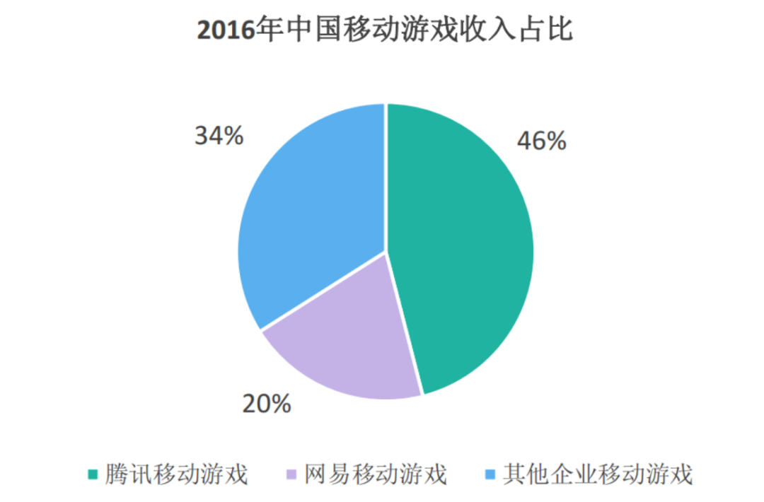 在2016年,市場格局產生了些變化——2015年年底騰訊的《王者榮耀》上線,次年網易上線《陰陽師》。遊工委的《2016中國遊戲產業報告》披露,騰訊和網易兩家公司的手遊收入佔比達到整個市場的66%,其他企業沒有一家佔比超過5%。同時,手遊市場的份額佔比也終於超過端遊,成為國內遊戲最大的細分市場。