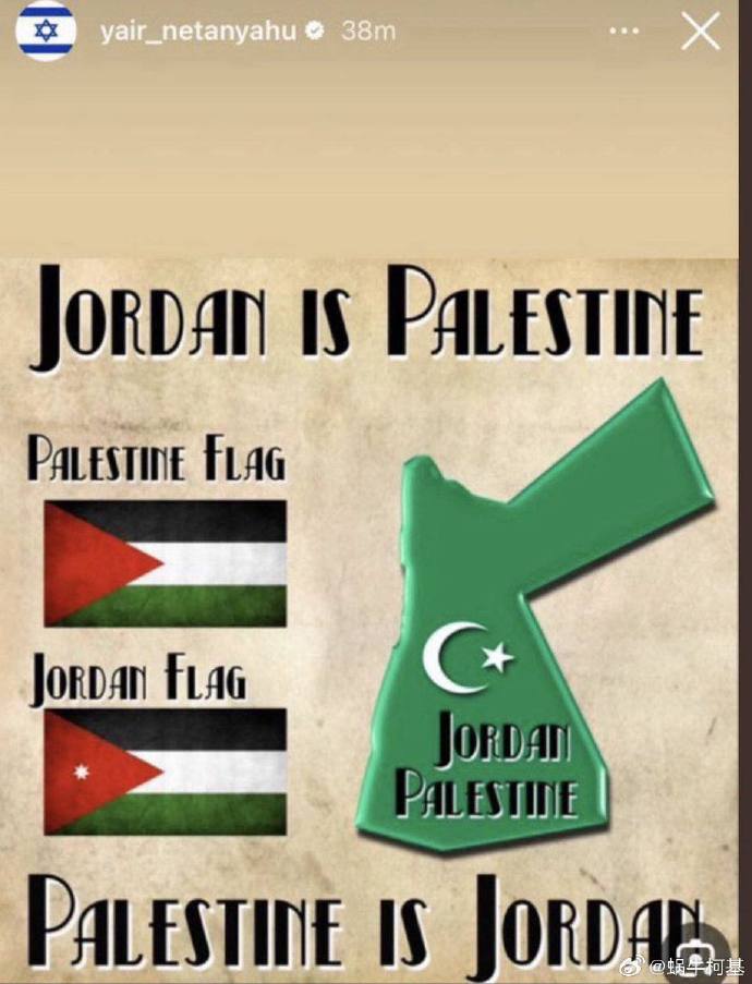 內塔尼亞胡之子發推,巴勒斯坦就是約旦,約旦就是巴勒斯坦
