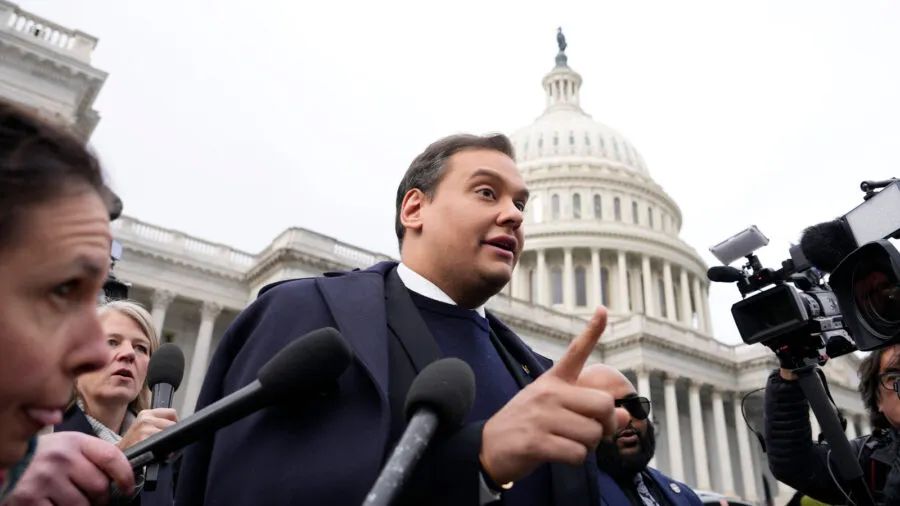 ▲2023年12月,美國眾議院發起投票,將醜聞纏身的紐約州眾議員喬治·桑托斯逐出國會。投票結束走出國會大廈的桑托斯在記者的簇擁下直接當眾爆粗,“讓這個地方見鬼去吧!”