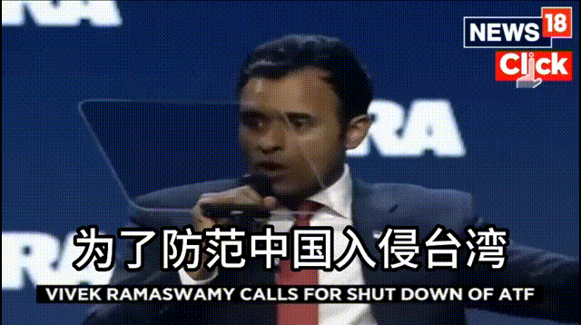 ▲ 2023年4月,美國共和黨總統參選人維維克·拉馬斯瓦米在美國步槍協會的一次造勢活動上公開提議讓每個台灣家庭擁有一把槍,以自我防衞。