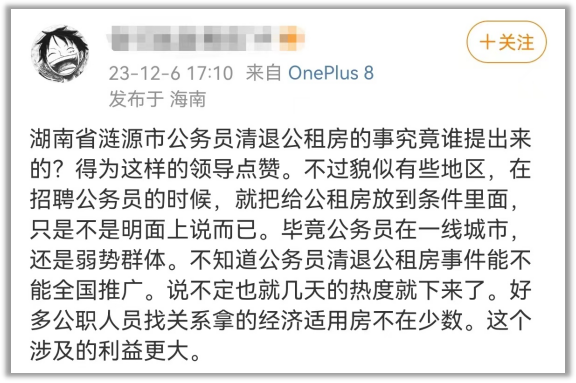 面對這件事情,我們要檢討的是權力的尋租和濫用,要實現的目標是讓惠民政策真正照顧到中低收入羣體,而不是説要讓所有公職人員都不能住公租房。