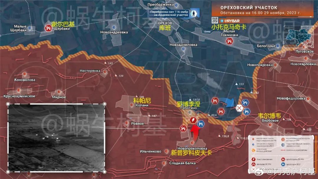 頓涅茨克南部戰役方向的焦點,則毫無疑問集中在阿夫傑耶夫卡築壘區域。在俄軍於十月份在阿夫傑耶夫卡形成突破後,烏軍緊急調動重兵馳援,比如著名的全北約裝備的第47機械化旅,還有第110機械化旅、第116機械化旅等部隊,都被緊急抽調到了阿夫傑耶夫卡。最新消息是烏軍又在扎波羅熱前線繼續抽調部隊,在扎波羅熱的烏軍集羣為此已經就地轉入防禦。