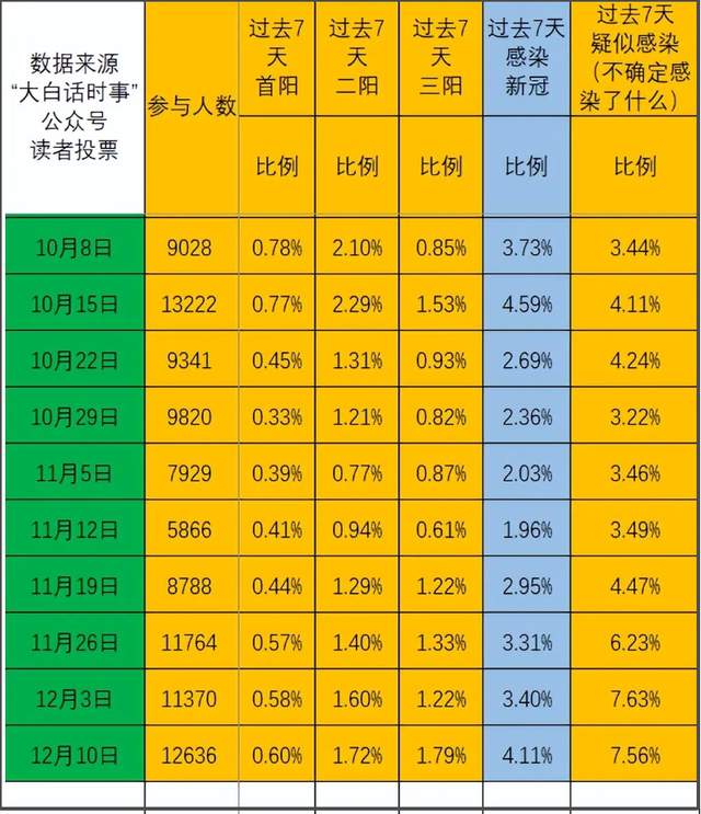 我每週日會發起“新冠感染情況”投票,統計我讀者羣體的新冠感染比例。