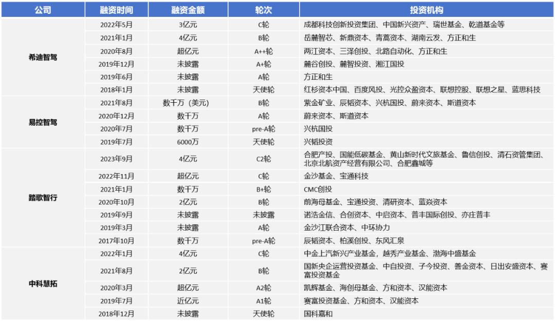 在上述四家頭部企業中,中科慧拓、希迪智駕、踏歌智行三家企業融資輪次均已進入C輪,甚至C1輪,意味着企業的商業化能力和未來潛力被資本市場看好;此外,進入C輪,也意味着即將開啓上市之路。