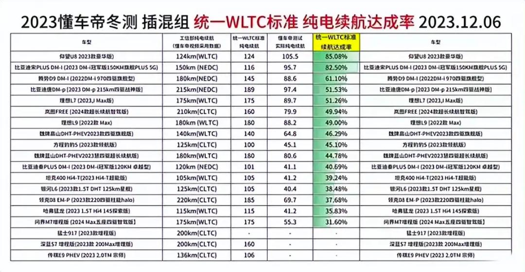 近日,懂車帝測試了在嚴寒情況下的混動車型純電續航達成率,約20個車型參加測試。其中,華為、賽力斯聯合打造的問界M7增程版以31.6%的續航達成率排名倒數第一,吉利、長城旗下的多款車型在測試中續航達成率均不到40%。
