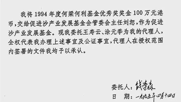 錢學森淡泊名利,品行高潔,一生中多次捐獻稿費、講課費和獎金,最大的一筆為100萬元,這筆鉅額獎金甚至沒有經過他的手,就直接委託秘書捐給促進沙產業發展基金會。