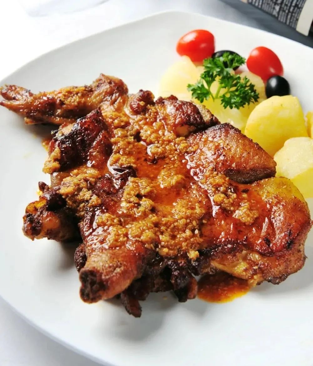 説白了,就是一種刷醬的烤雞,香菜、生薑、紅葱頭和大蒜切碎末,拌橄欖油、檸檬汁、鹽和胡椒後醃製雞肉(也有加椰奶的),烤制完成後再刷一點花生醬,把同樣的醃料灑上一小碗,才有一種酸、辣、香、甜的復合口味,據説是好吃裏頭帶着點魔性,屬於“好怪,再吃一口”那種。