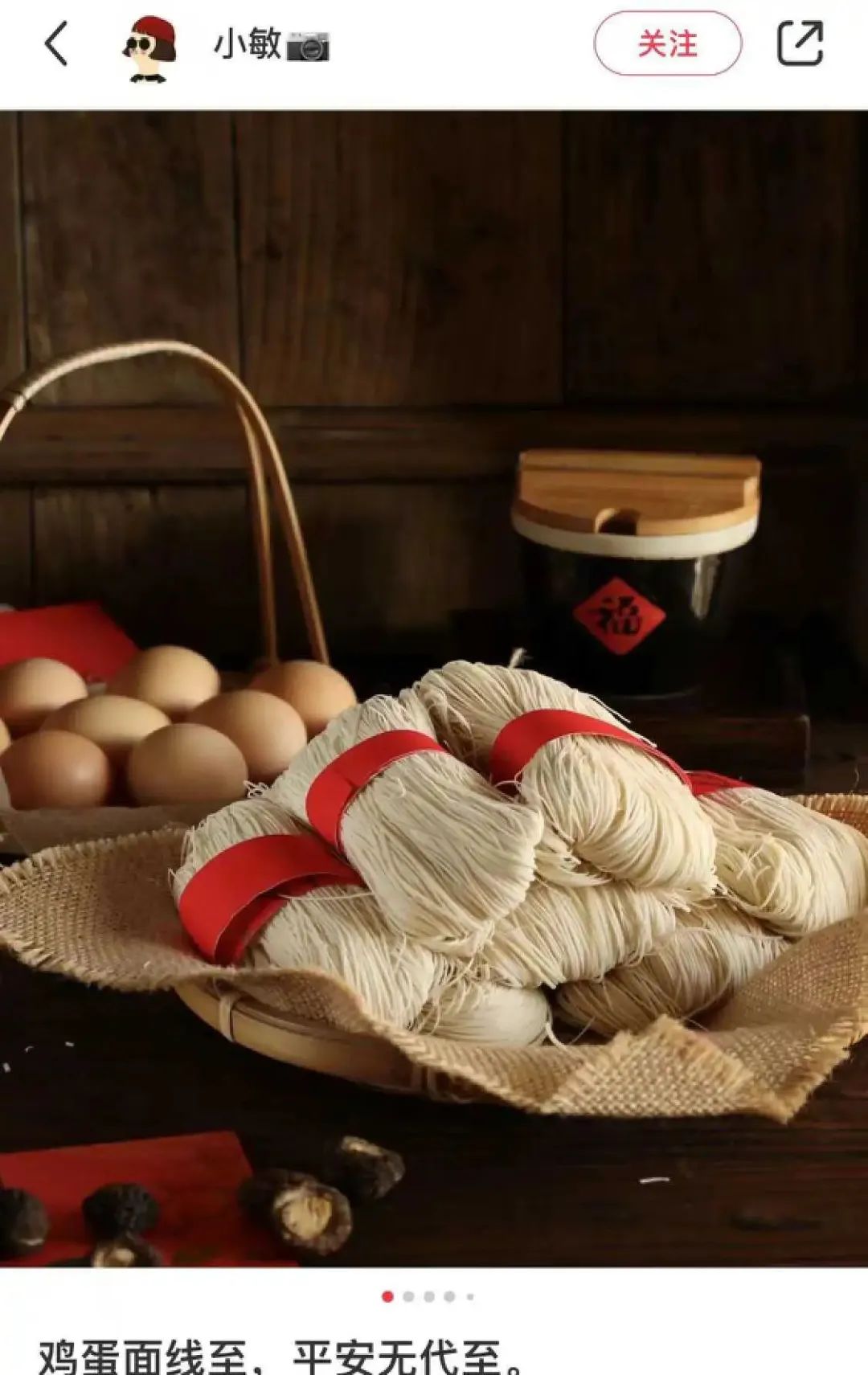 線面連綿不絕,沒有盡頭,是情感的綿亙不斷,扯不完的線面也寓意着一路平安順遂,不管你走到哪裏,這碗“平安面”都能把我們牽在一起。