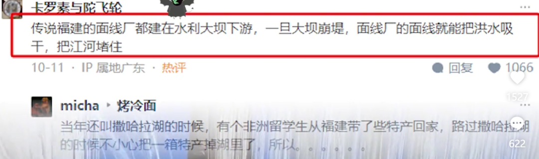 甚至還有一種説法是:福建所有的線麪廠都建在水利大壩下游,一旦大壩崩潰,線麪廠就能把洪水吸乾。