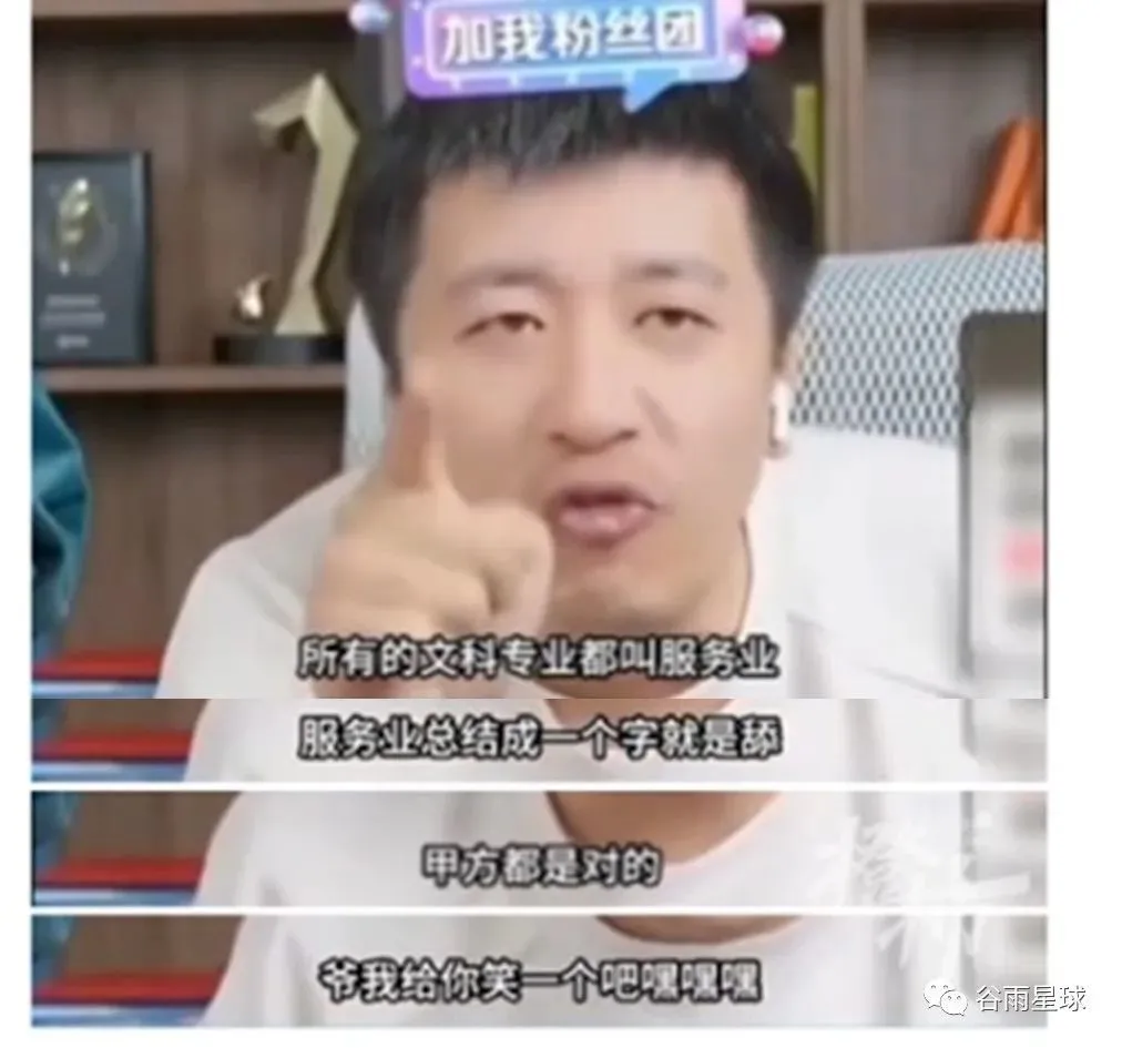 近期,張雪峯在直播間裏一段關於「文科都是服務業,就是靠‘舔’!」的言論,將輿論罵戰掀到了頂點。