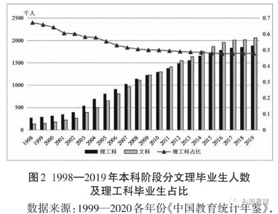 自1999年開始,隨着國內高校擴招,畢業人數和比例顯著提升。