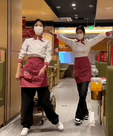 海底撈的服務員勤學苦練,把科目三當成了職場必修課。