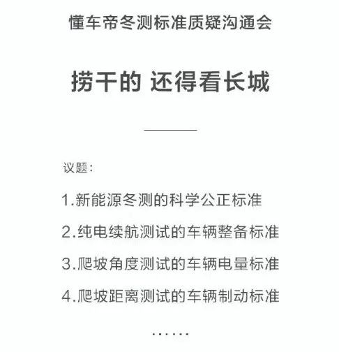 由懂車帝自有“類媒體”團隊在自家流量平台上發佈打分、排行等信息的行為是否妥當,本身就值得探討。懂車帝不是汽車行業的專業評測機構,為此在其推出的原創節目《懂車試驗場》中,曾引入第三方權威機構國家汽車質量監督檢驗中心(北京順義)合作,如果此次“冬測”也有類似專業機構來背書,相信其結果可以讓不少車廠“閉嘴”。