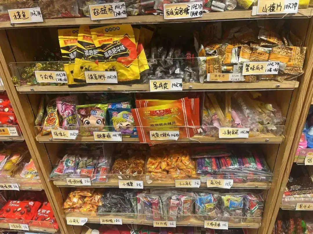 在北京著名打卡地標—簋街,默默偶然走進了這家小店,左右兩排貨架上,密密麻麻擺滿了充滿童年回憶的小零食。“真沒想到還能看到麥麗素、小螃蟹、流口水、大喔喔糖這些零食。”默默向店主感慨道。