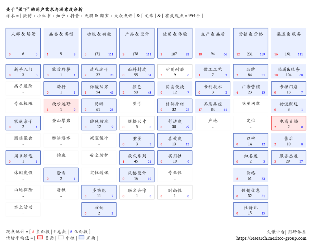 通過對蕉下進行社媒內容分析,可以清晰的看到,社交媒體上用户更注重蕉下的功能&功效,除了防曬的標籤,透氣速幹、多功能、舒適度等標籤,成為年輕人關注的焦點,這些標籤與户外有着天然的聯繫。因此,蕉下通過品牌驅動賽道升級,也就水到渠成了。