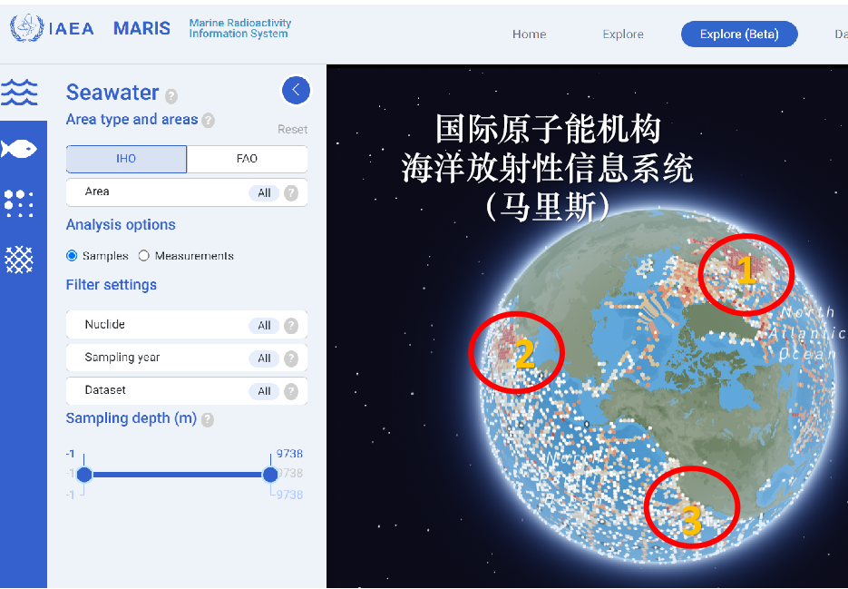 有夥伴推薦了國際原子能機構一個監測全球海洋放射性情況的網站,名叫《國際原子能機構海洋放射性信息系統》。在前文《破案了,多個重大事變的真相!》蒐羅資料時,就曾發現有網友“事後諸葛亮”稱早就通過這個系統發現英國塞拉菲爾德核設施異常。
