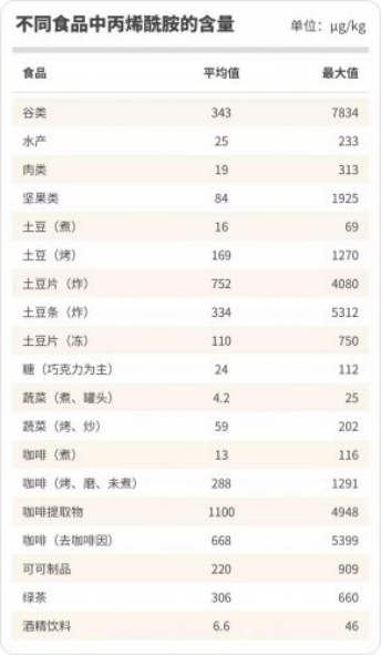 根據2010年國際《食品與化學毒物學期刊》一項研究結果,丙烯酰胺導致致癌時的劑量為2.6~16μg/kg.day(1微克是1克的一百萬分之一),即一個體重60公斤的成年人,若每天攝入丙烯酰胺156微克(156微克=2.6 微克×60)就達到致癌的量。