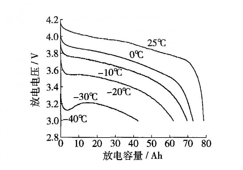 相關機構對80 Ah、標稱電壓為3.7V的鋰離子電池在不同温度下進行的可用容量測試數據變化