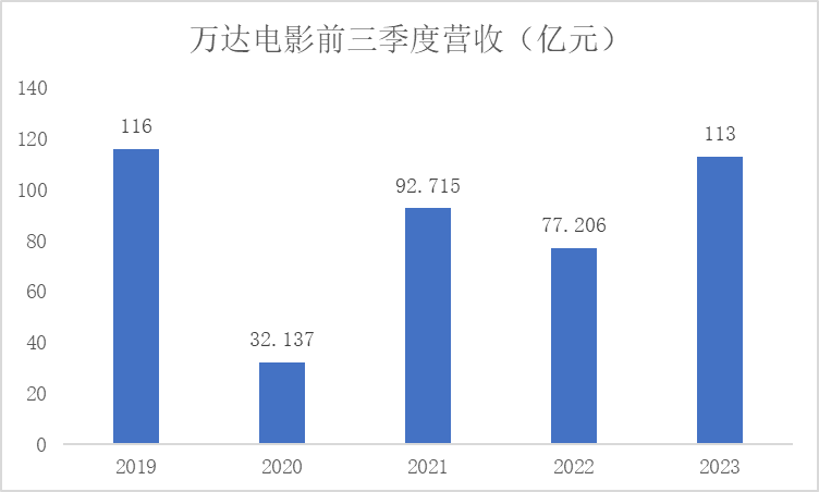 而從萬達電影的歷年三季報來看,也能看出,2020-2022年營收都很慘淡,今年前三季度才接近2019年前三季度營收,還沒超過……