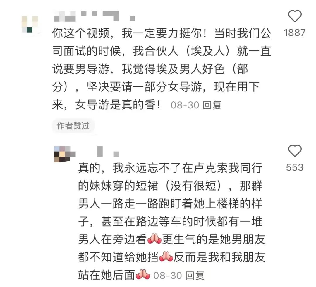 而在這條視頻的評論區裏,也有不少女孩分享了自己和女導遊的故事。