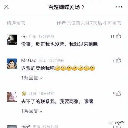 陳麗君越劇現場演出是一票難求。目前所有浙江小百花越劇團演出場次,只要有陳麗君,全部秒空。前兩天,本來計劃12月25號陳麗君李雲霄合作演出《梁祝》,因故改期,官網説有退票需求可以辦理,結果底下評論區全部都是在求大佬給票。