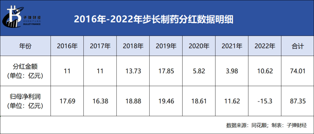 拉長時間來看,2016年上市以來,步長製藥已經連續7年實施分紅,累計實現淨利潤87.35億元的情況下,現金分紅金額為74.01億元,分紅率為85%,趙濤、趙曉紅夫婦已經分得39.76億元。