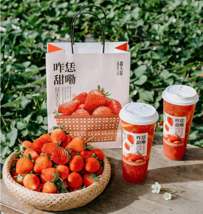 11月底,眷茶的“咋恁甜嘞”草莓系列迴歸,推出了三款產品:草莓鮮橙茉莉、草莓橘香芝士、雪藏莓莓酸奶。