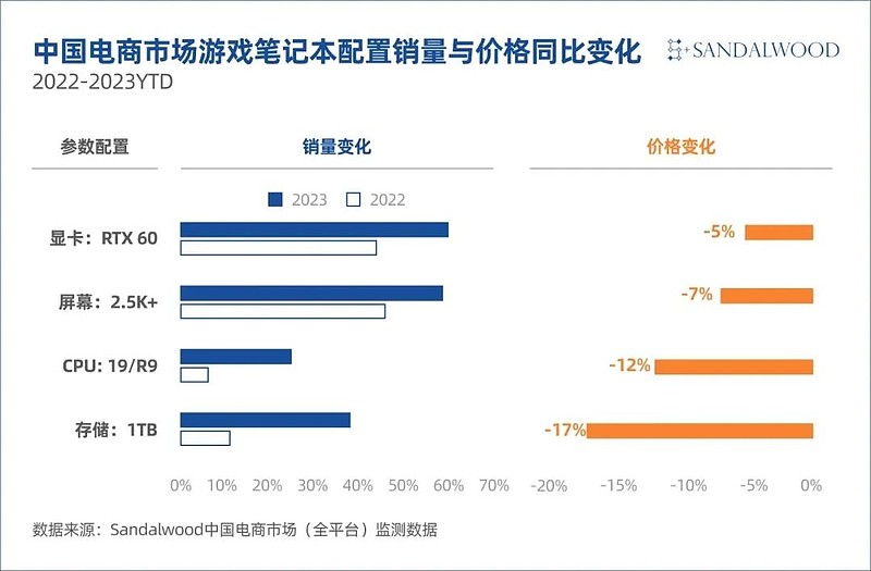 清理庫存的策略傳導至終端市場,使得高配置筆記本的佔比迅速增加,同時對應的售價降低,特別是在遊戲筆記本市場上更為明顯。