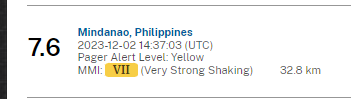 而菲律賓的7.6級地震MMI等級只有7級。(強地震)