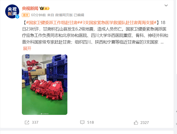 看新聞,來自國家各個區域的救援隊已經迅速趕往地震區域展開救援。