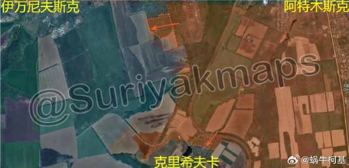 1、阿特木斯克:北翼,俄羅斯軍隊正試圖挺進伊萬尼夫斯克,並控制了通往恰索夫亞爾的路線。南邊,俄羅斯武裝部隊正在對克里希夫卡-安德里伊夫卡一線發動猛烈攻擊。
