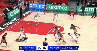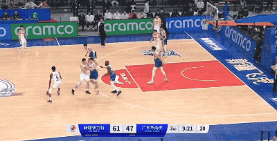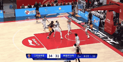 廣東隊上提高壓壓迫瓊斯,此時阿不都沙拉木精準找到防守的缺口,讓瓊斯有了出球的線路