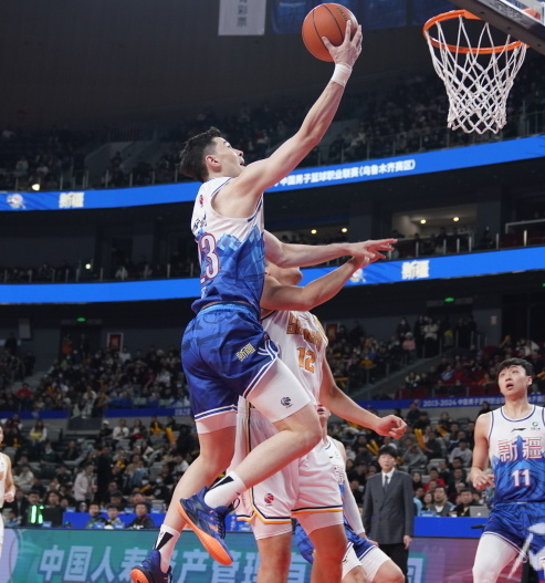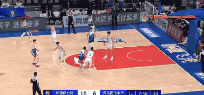作為新疆隊腿腳最慢的人,但卻從最後一名不斷反超隊友跟進到前場,找到防守中一條無人防守的路線,完成反擊上籃