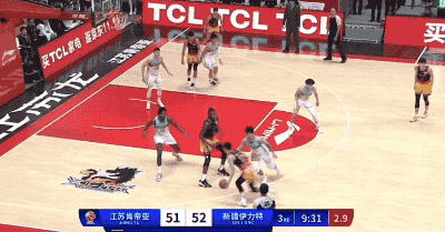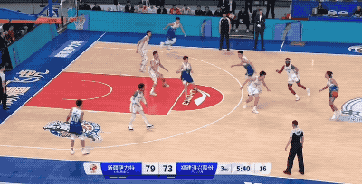 當特萊斯準備出手的前一刻,阿不都沙拉木已經預判啓動衝搶前場籃板,最後成功為新疆隊拼出額外的進攻回合