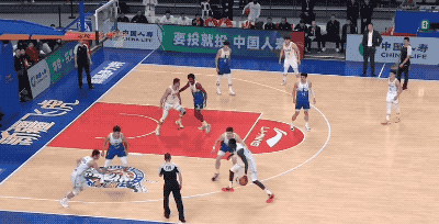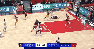 **其實從第二階段開始,阿不都沙拉木低位做軸這件事情的權重已經開始有所下滑。**新疆隊的戰術重心也從賽季初語焉不詳的樣子,逐漸落到了趙睿、瓊斯這些組織後衞身上。很多時候,新疆隊傾向於使用特萊斯/趙睿+於德豪的雙控衞陣容,而這樣的配置對於阿不都沙拉木低位做軸是非常不利的。