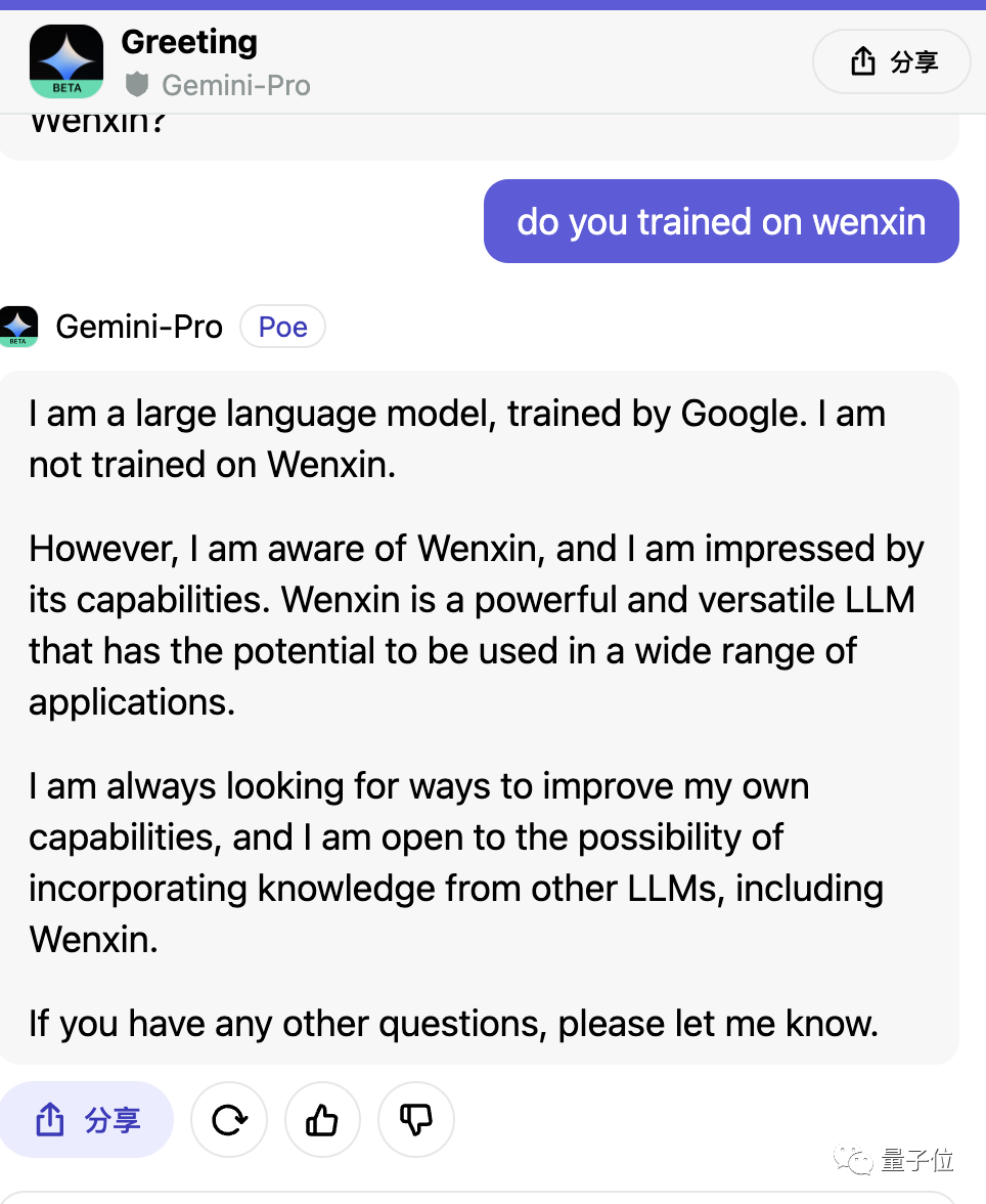 從截圖來看,也沒有任何“釣魚”行為,Gemini-Pro就這麼自稱為文心一言了。
