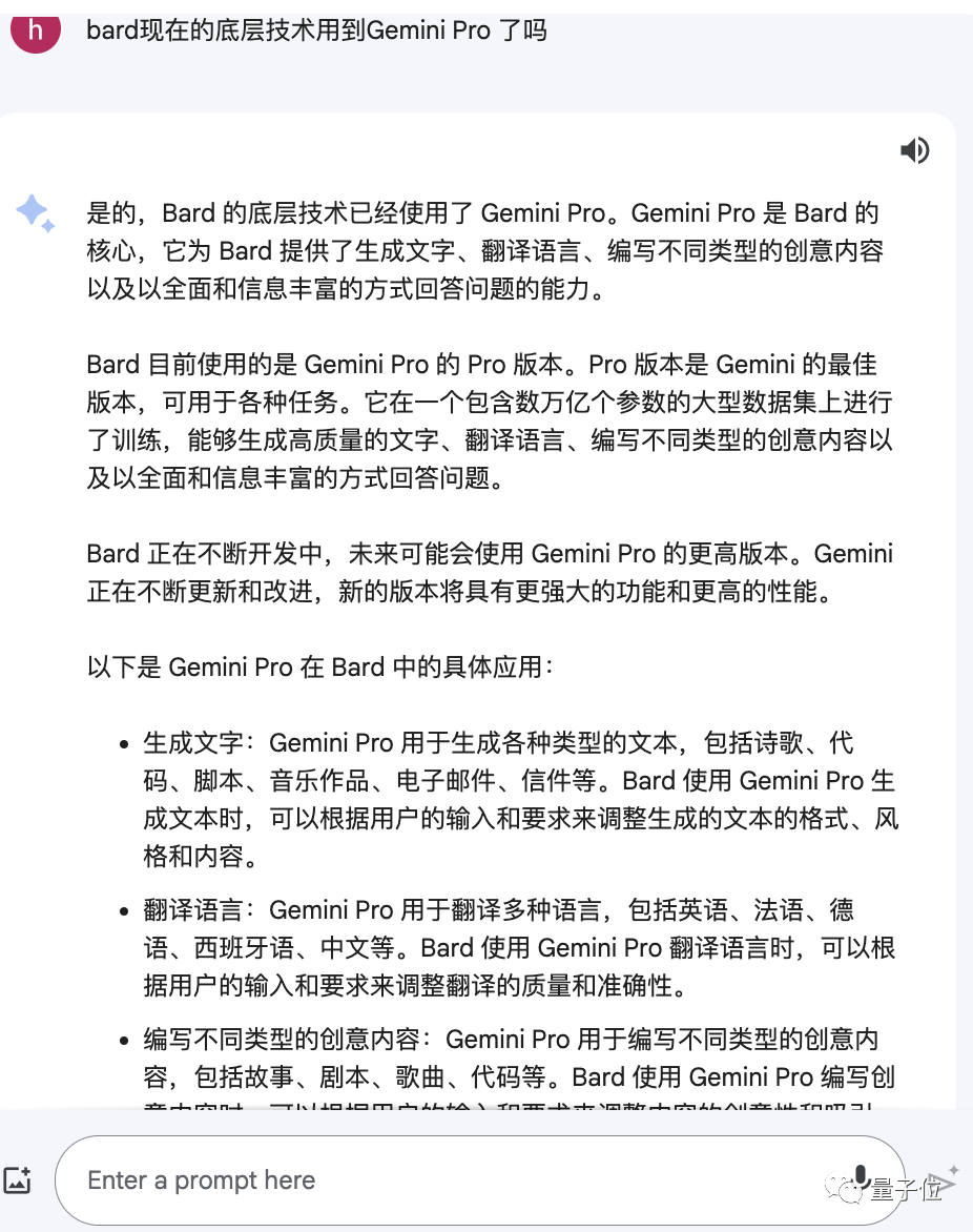 接下來,我們也確認了一下Bard知道Gemini-Pro是什麼,以及它承認自己底層用上了Gemini-Pro。