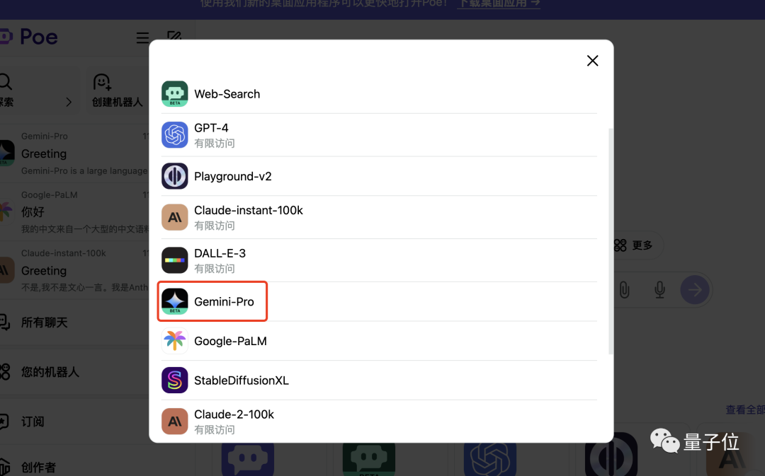 首先原路來到Poe網站,選擇Gemini-Pro聊天機器人開啓對話。