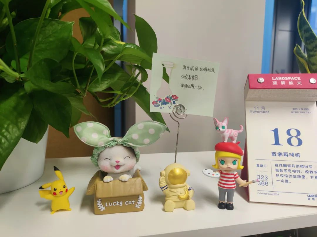 最近倩倩通過對公司觀察發現,最能給員工們帶來快樂的方式是“發盲盒”。在藍箭航天,許多年輕員工的工位上都擺放着若干不同系列的潮玩。“我們還經常有人帶‘娃’到公司交換”,她打算將潮玩納入公司福利,“目前這是公司呼聲最高的項目。”